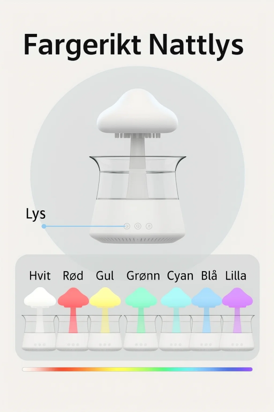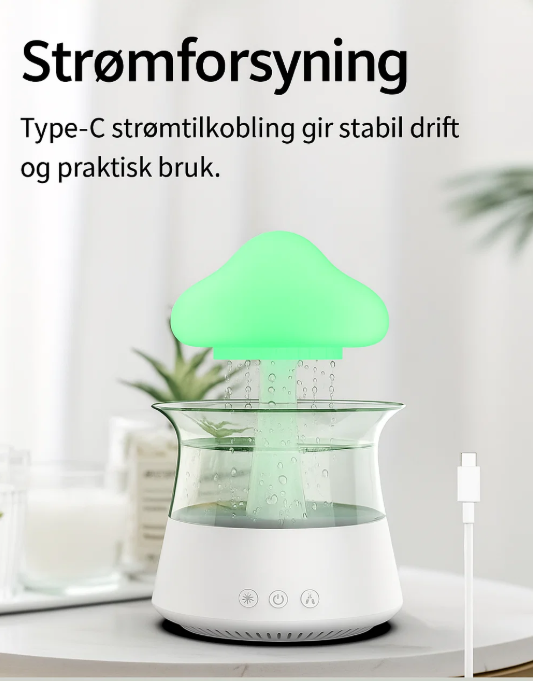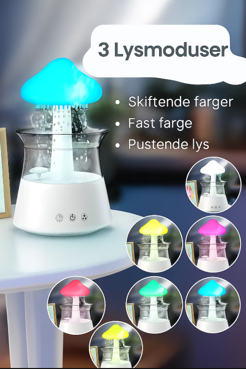 Opplev en unik kombinasjon av ro, design og funksjonalitet med Velora ZenCloud – en luftfukter og aromadiffuser som skaper en avslappende atmosfære i hjemmet. Den simulerer ekte regndråper som faller ned i vanntanken, kombinert med stemningsfullt nattlys og stillegående drift. Perfekt for soverom, stue eller hjemmekontor.